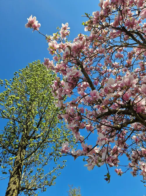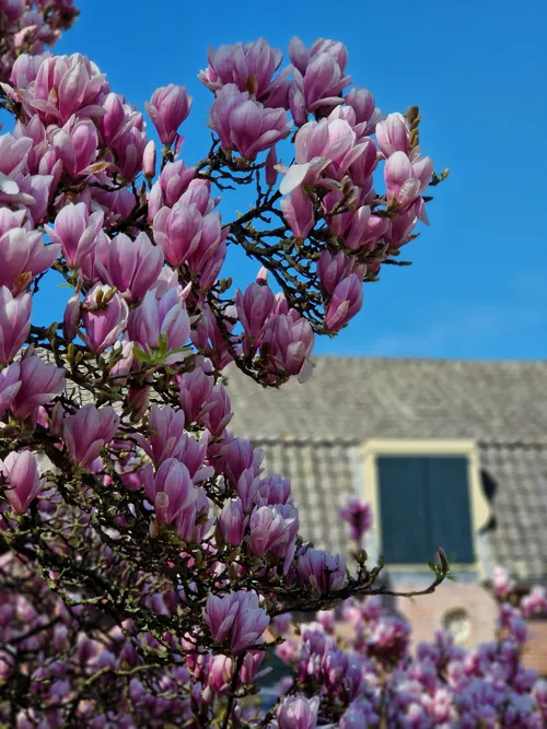 We kunnen volop genieten van de bomen die in bloei staan in onze wijken. Op de foto's staan een geweldige magnolia en de Japanse kersen van de Castellumlaan in De Meern.